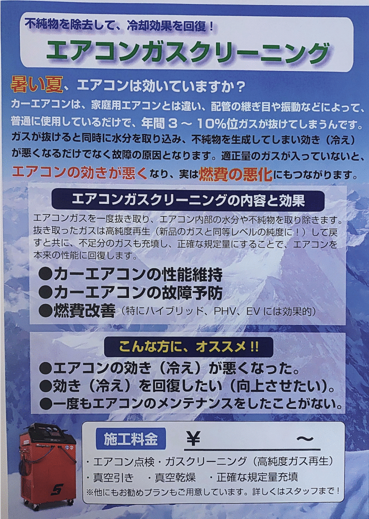 また自動車のエアコン配管内のクリーニングも行うことができます