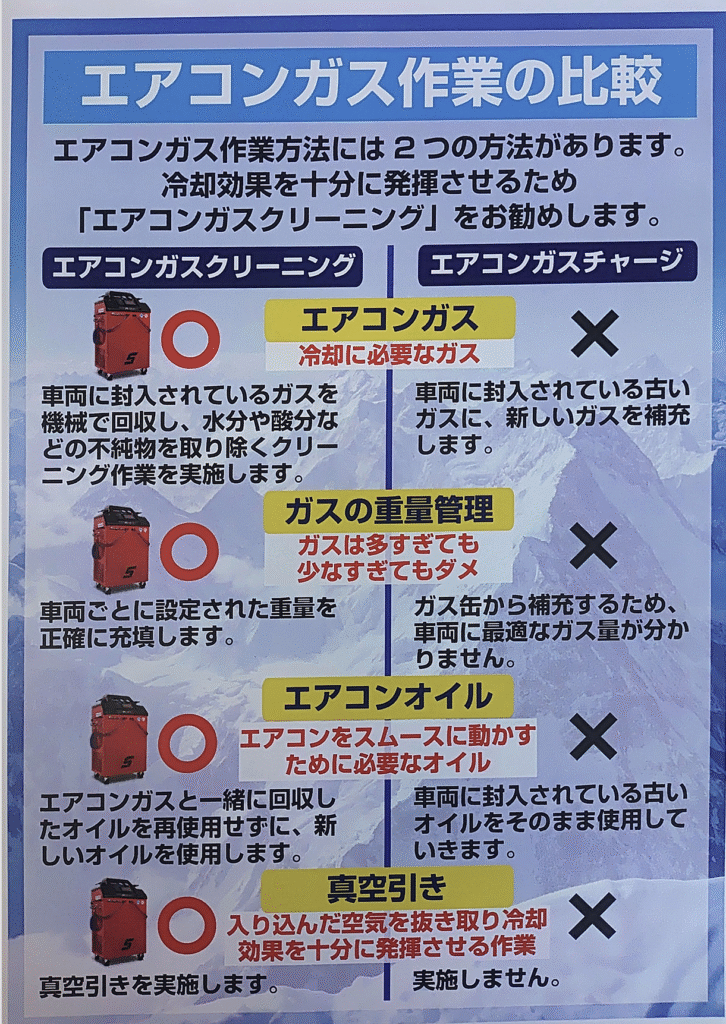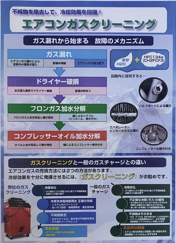 ガスの充てんと共に古いオイルも回収して新しいオイルもしくはオイルコンディショナー